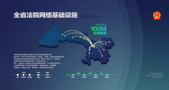 一是信息化基础建设取得了新进展。建成覆盖全省三级法院和基层法庭的高速度、大容量、多样性法院信息专网,实现了到中级法院100M、基层法院20M、派出法庭4M的带宽专网。建成423个科技法庭,实现了全省范围审判信息数据传输、远程视频会议、死刑复核远程提讯、远程多方办案、庭审观摩、远程培训的互联互通。