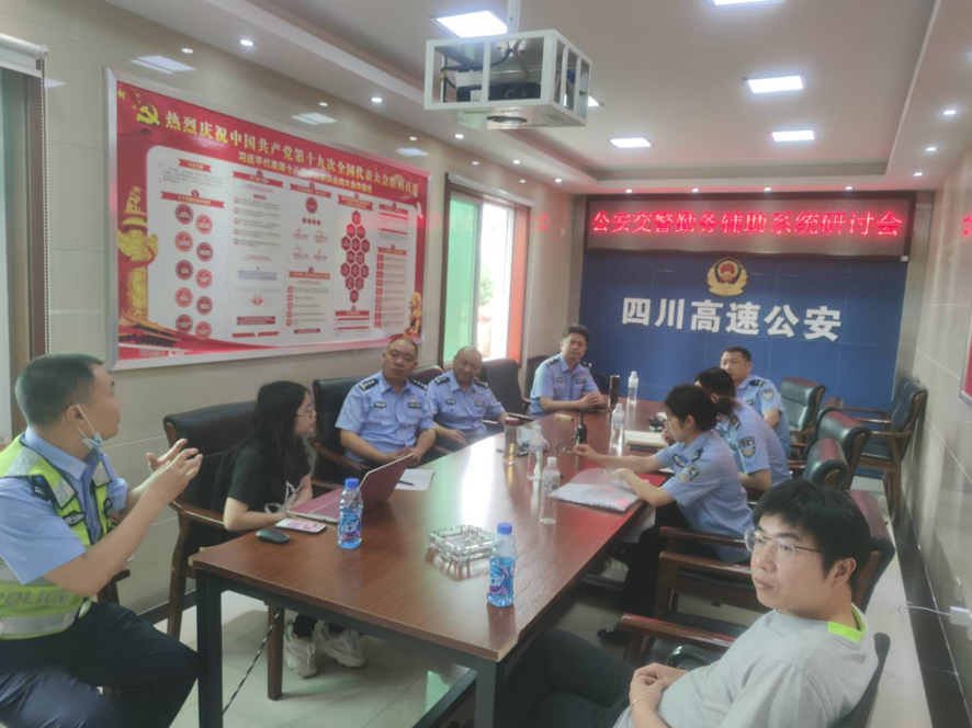 2020年5月21日,爱辉公司总经理胡思泽亲自带队,受邀到访四川省公安厅交通警察总队高速公路一支队二大队(简称成南高速交警队),针对公司新研制的交警勤务辅助系统组织了专题座谈会,公司项目组的技术专家、技术专员陪同出席了本次交流活动。