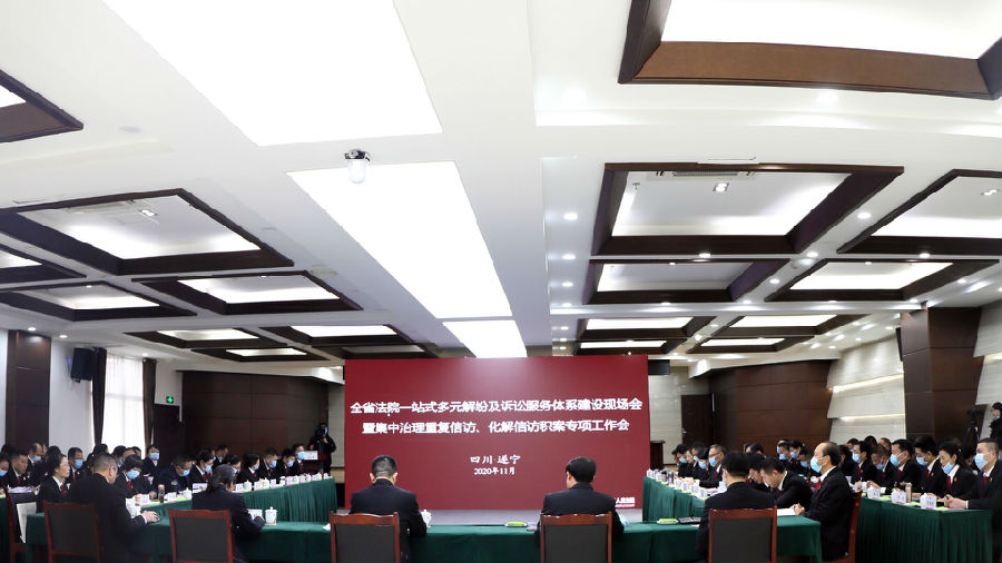 11月24日,四川高院在遂宁市组织召开“全省法院一站式多元解纷及诉讼服务体系建设现场会”,旨在总结回顾2019年以来全省三级法院一站式多元解纷及诉讼服务体系建设工作推进情况,贯彻落实今年9月全国高级法院院长座谈会、全省中级法院院长座谈会会议精神,并对下阶段一站式多元解纷和诉讼服务体系建设工作进行安排部署。