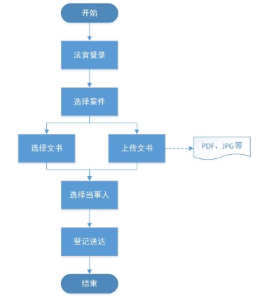 法官登录系统并选择送达的文书文件以及送达人,完成后由当事人在终端进行接收。