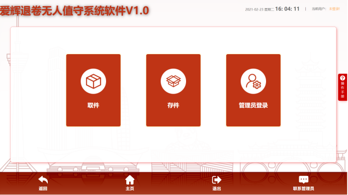 24小时无人值守退卷柜由系统终端、微信小程序、后台管理端及柜体本身构成。